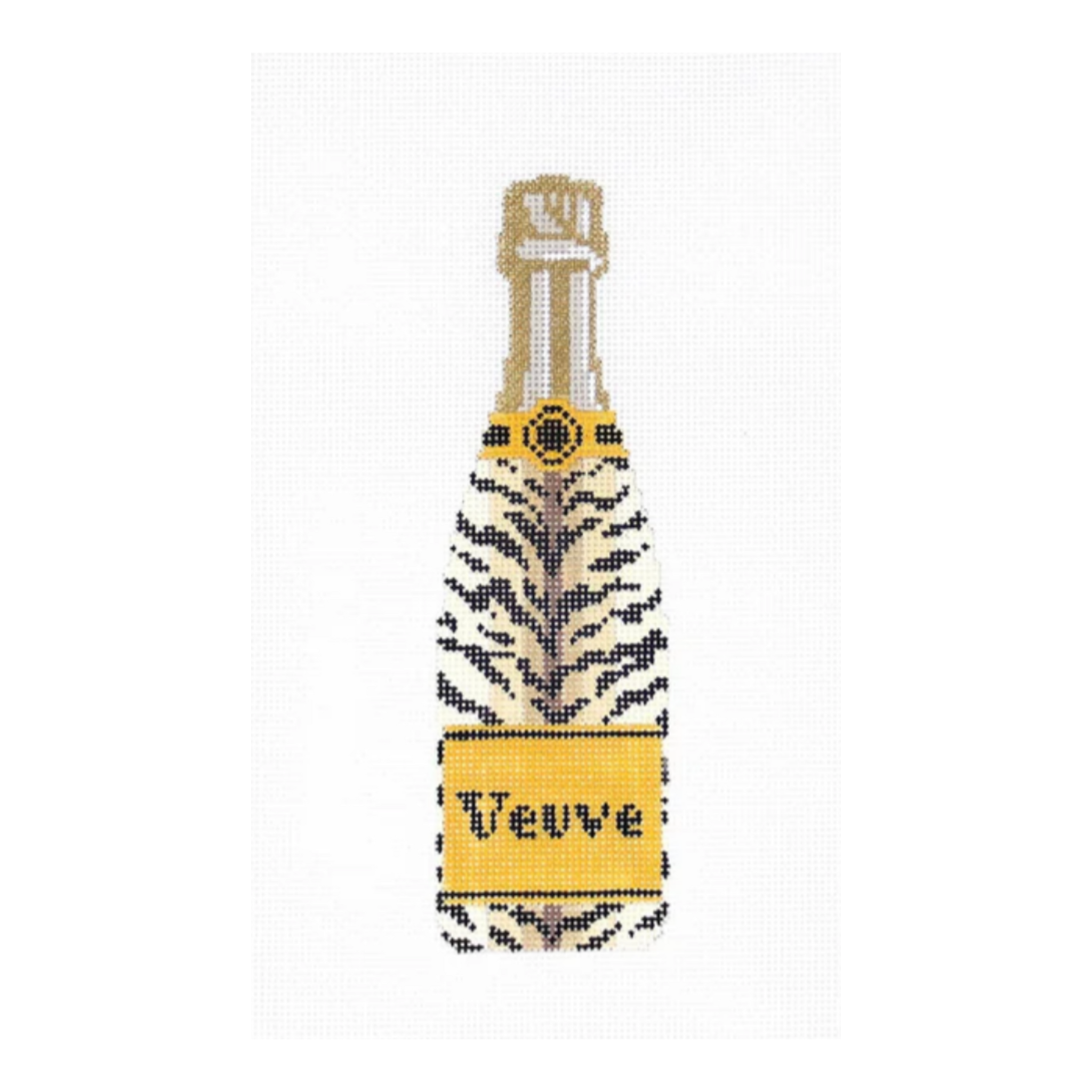 Bold, fearless, and undeniably chic, this needlepoint canvas pairs an iconic Veuve bottle with a striking tiger stripe pattern for maximum impact. Stitched on 18-count mesh, it’s a confident, high-style design that blends wild energy with classic champagne glamour.